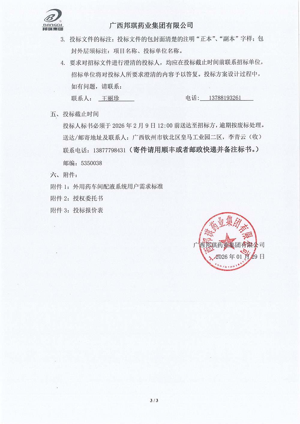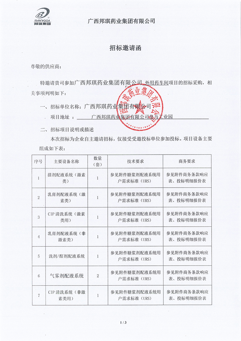 广西邦琪药业集团有限公司外用药车间配液系统招标邀请函