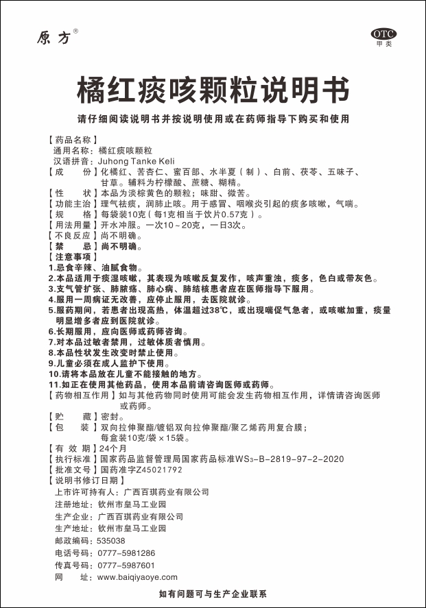功能主治: 理气祛痰,润肺止咳。用于感冒、咽喉炎引起的痰多咳嗽,气喘。