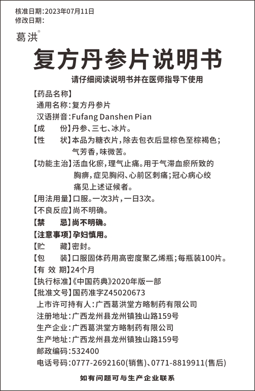 活血化瘀,理气止痛。用于气滞血瘀所致的胸痹,症见胸闷、心前区刺痛;冠心病心绞痛见上述证候者。