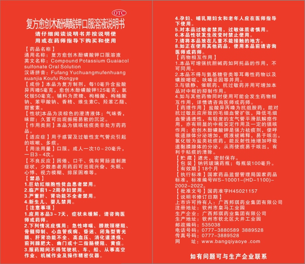 产品名称: 复方愈创木酚磺酸钾口服溶液